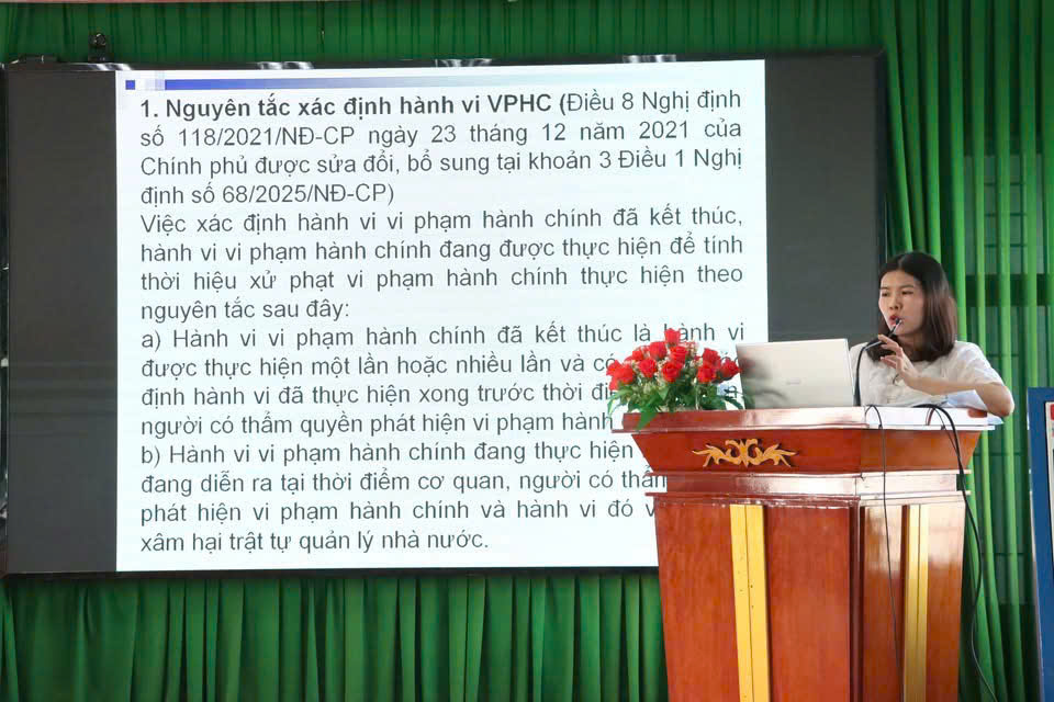 Tại Hội nghị, các đại biểu đã được nghe báo cáo viên Sở Tư Pháp tỉnh trình bày các quy định của Luật, các văn bản hướng dẫn thi hành; Kỹ năng xác định hành vi vi phạm hành chính, xác định thẩm quyền lập biên bản vi phạm hành chính và kỹ năng lập biên bản vi phạm hành chính; Kỹ năng xác định thẩm quyền xử phạt vi phạm hành chính, ban hành quyết định xử phạt vi phạm hành chính; Hướng dẫn, giải đáp những nội dung còn vướng mắc trong quá trình triển khai thực hiện công tác xử lý vi phạm hành chính…