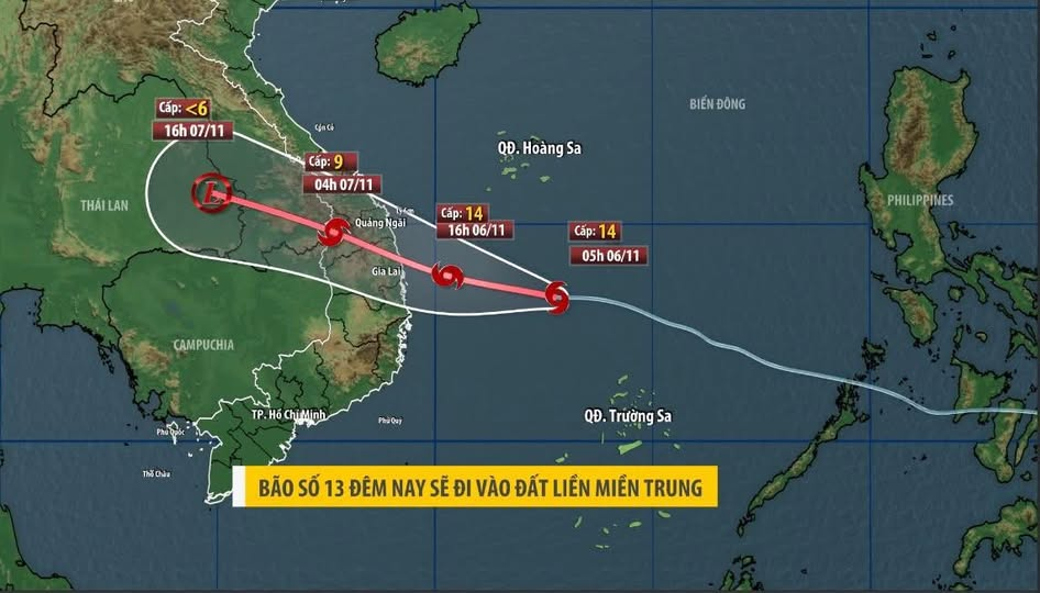 Đài KTTV tỉnh Quảng Ngãi cập nhật diễn biến bão Kalmagi (bão số 13) và Dự báo ảnh hưởng của bão đến tỉnh Quảng Ngãi (cập nhật lúc 06h/6/11/2025)