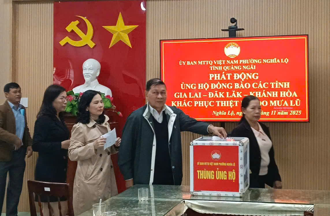 Sáng 23/11, Ủy ban MTTQ Việt Nam phường Nghĩa Lộ (Quảng Ngãi) tổ chức Lễ phát động ủng hộ đồng bào của các tỉnh GIA LAI – ĐĂK LĂK – KHÁNH HÒA khắc phục thiệt hại do mưa lũ.